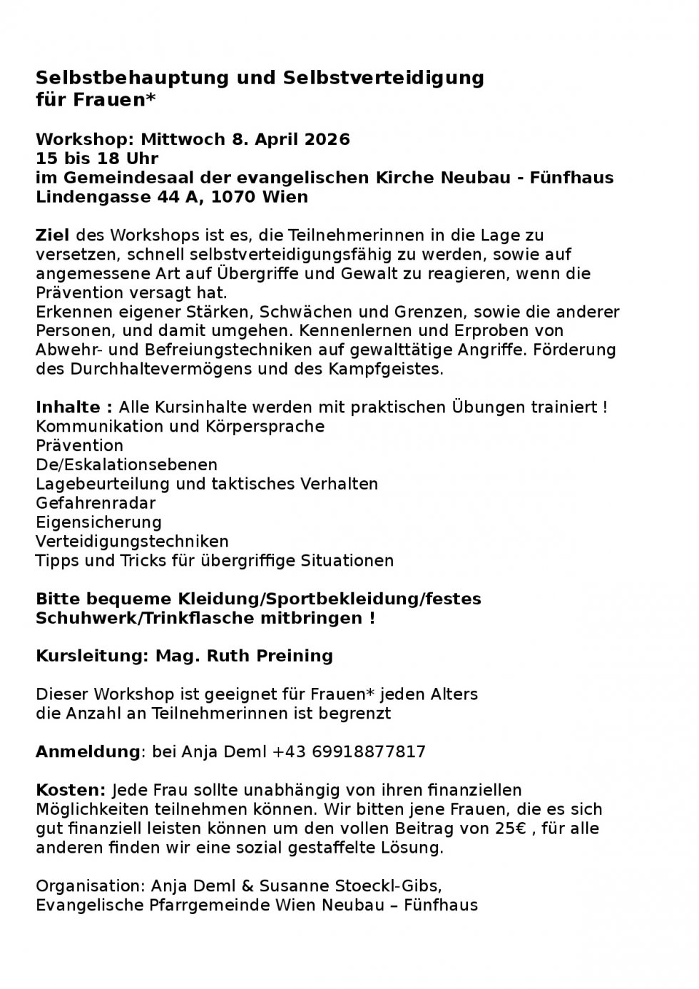 Selbstbehauptung und Selbstverteidigung für Frauen