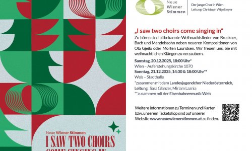 Addresse: AuferstehungskircheLindengasse 44a1070 WienSamstag, 20 Dezember 2025 - 6:00nachmittagsKonzert "I saw two choirs come singing in"