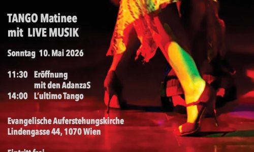 Addresse: AuferstehungskircheLindengasse 44a1070 WienSonntag, 10 Mai 2026 - 11:30vormittagsTango Matinee